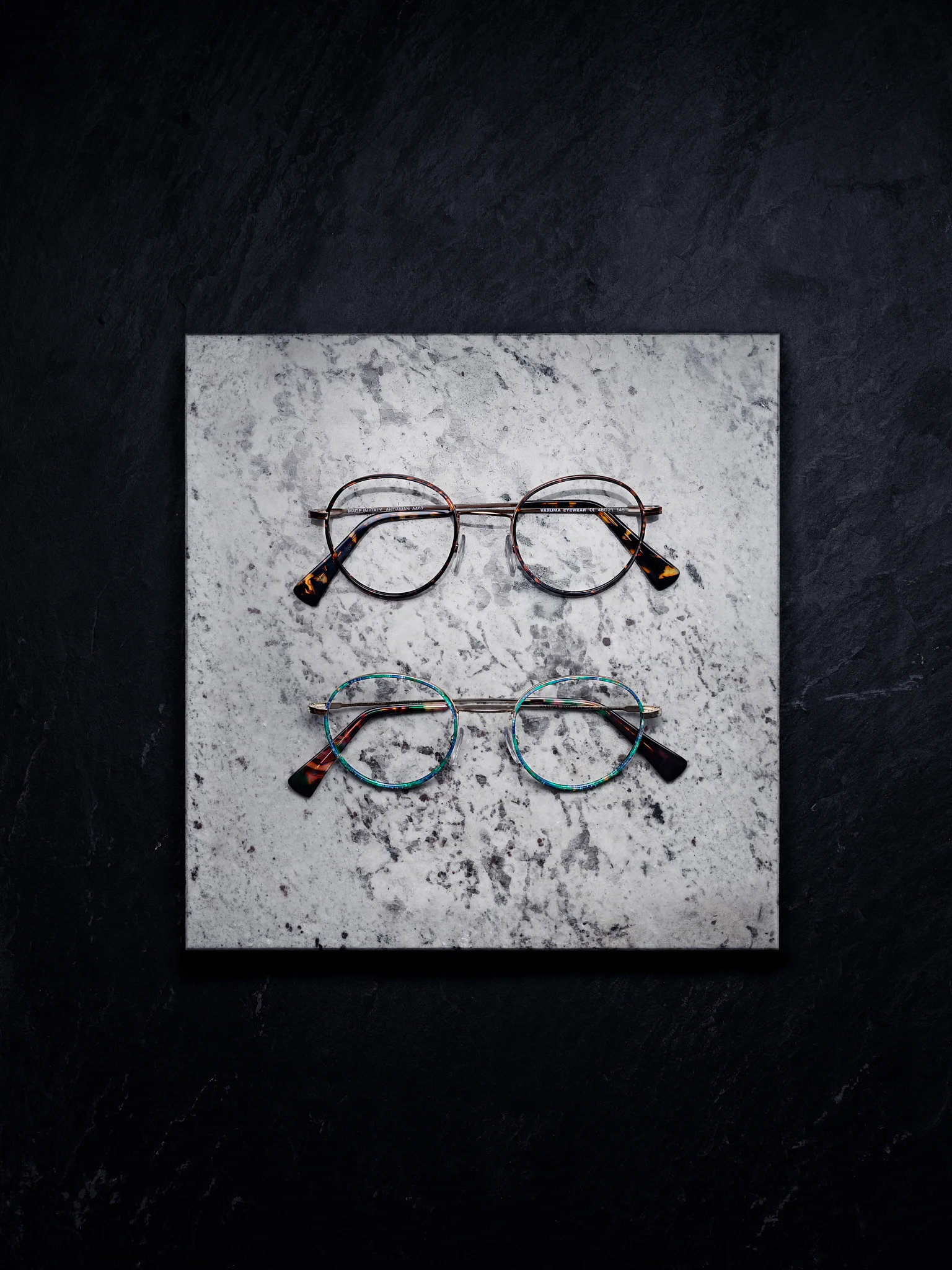 New work for the swedish eyewear company Vasuma, a small collection of still life images, shot from above. I used two types of surfaces in each image, as a backplate on all images we have a large slate sheet, and then I varied with different material such as Slate, marble and metal. to give a slightly different look to each image.